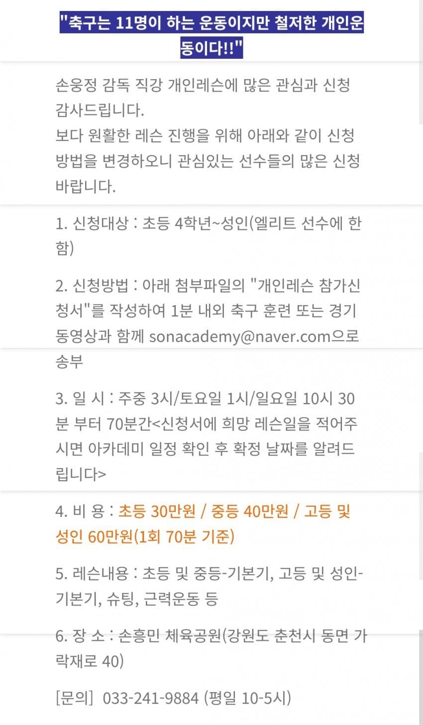손흥민 키운 손웅정 아카데미 1회 70분 30만원