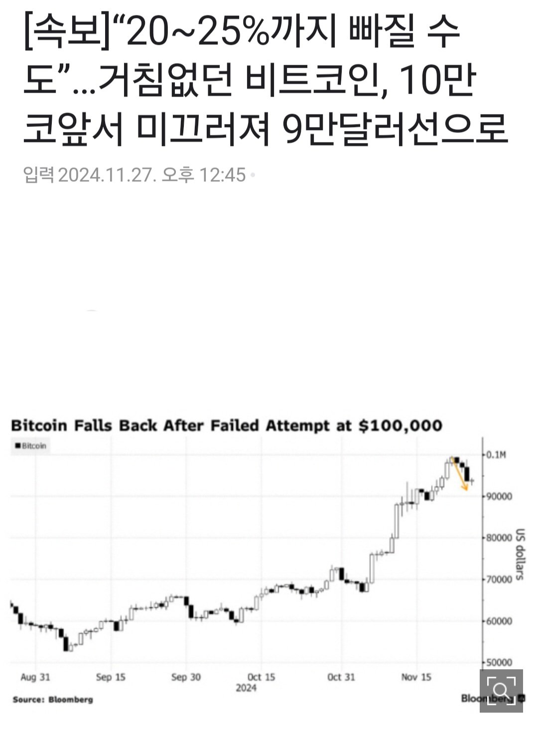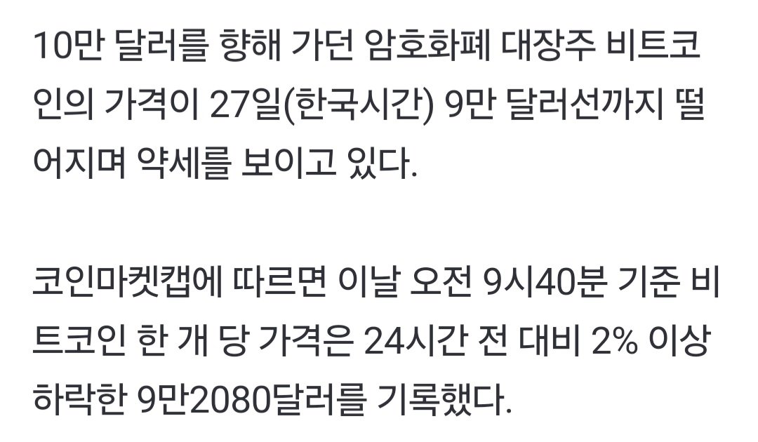10만 코앞이었던 비트코인 근황
