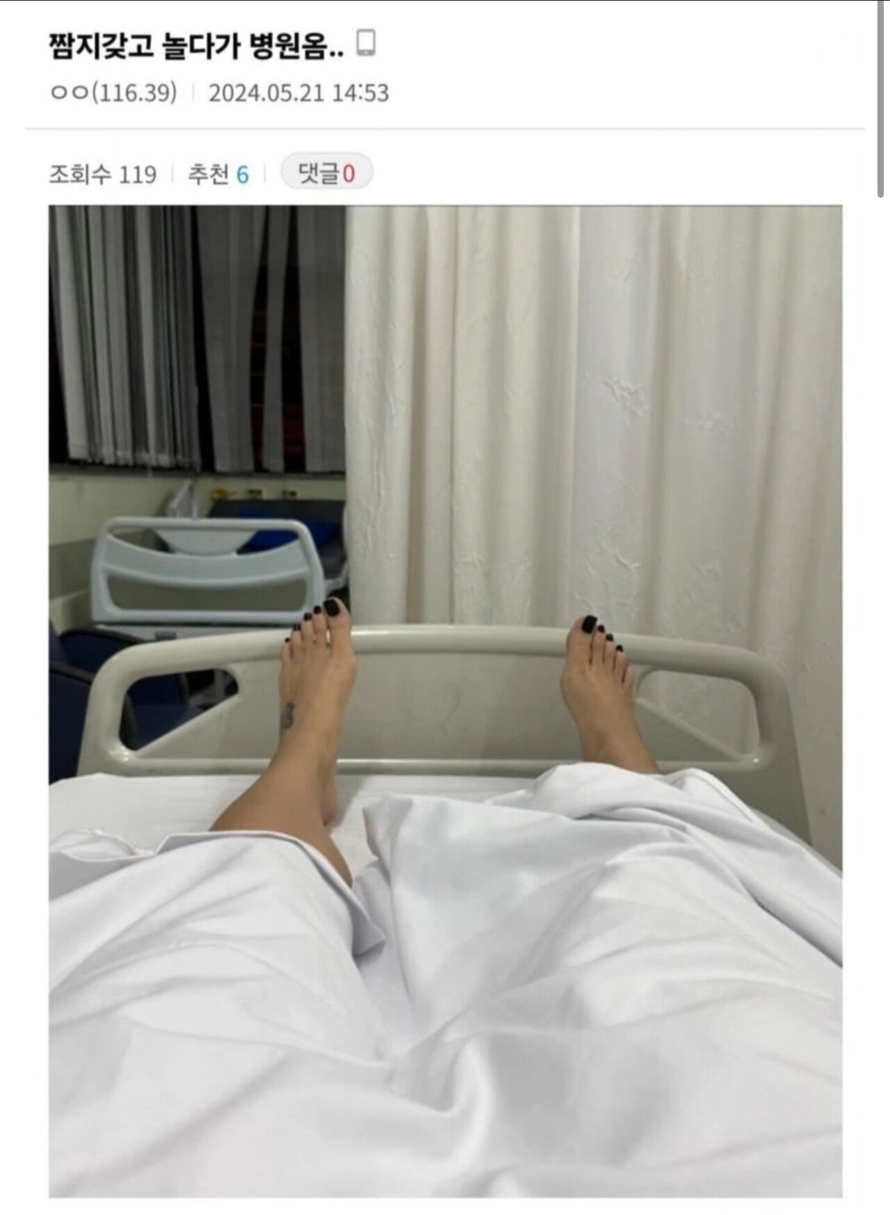 짬지갖고 놀다가 병원간 디씨인 ㅗㅜㅑ