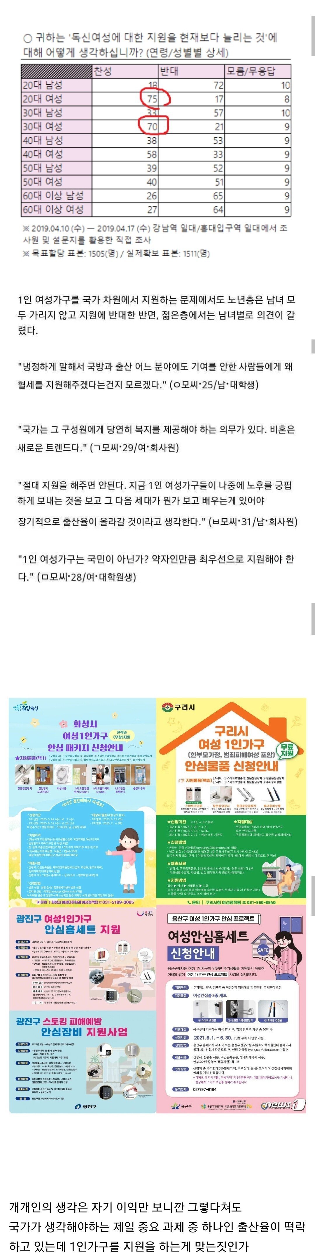 "1인 여성가구는 국민이 아닌가? 약자인만큼 최우선으로 지원해야 한다 (28 여, 대학원생)
