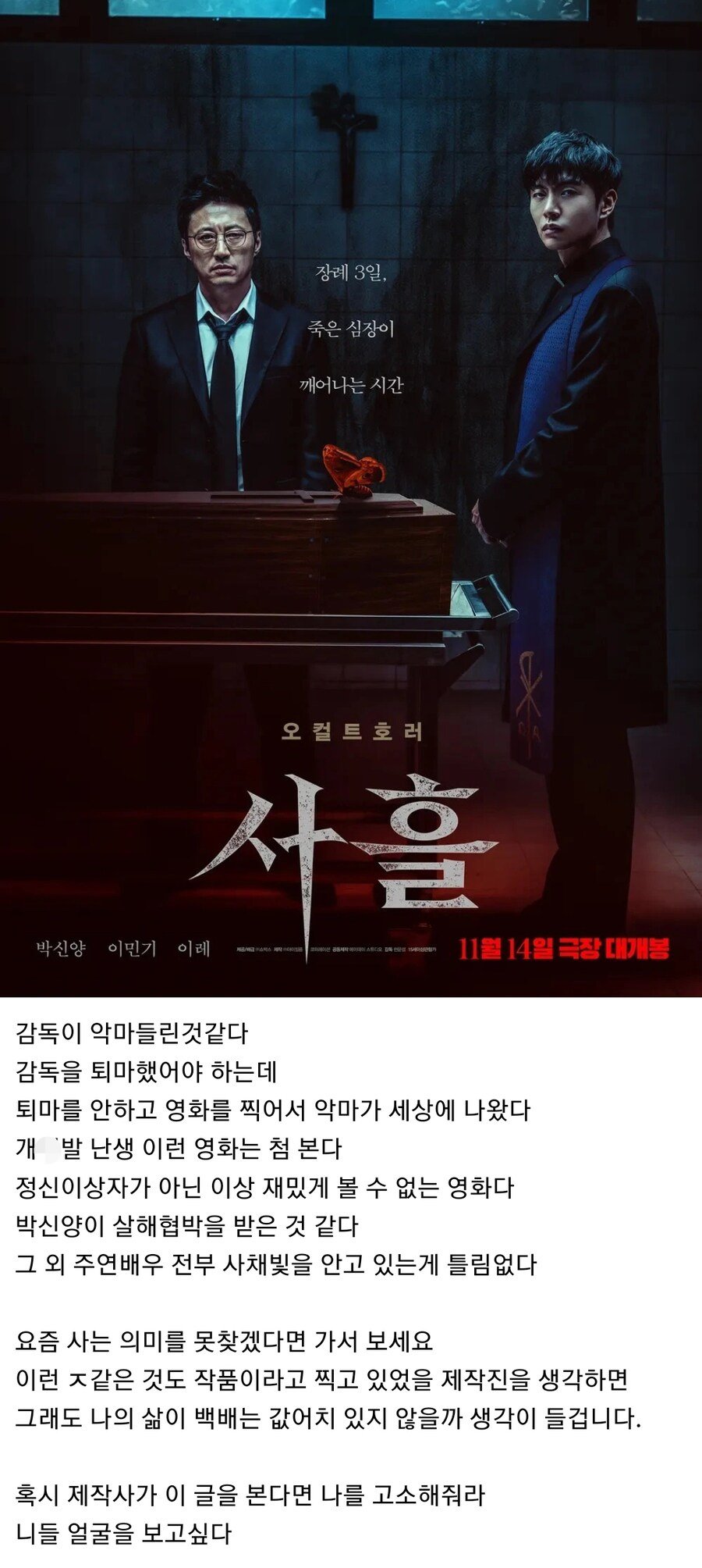 박신양 주연 호러영화 사흘 관람평....