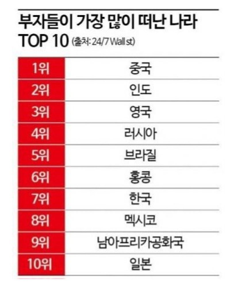 부자들이 가장 많이 떠나는 나라