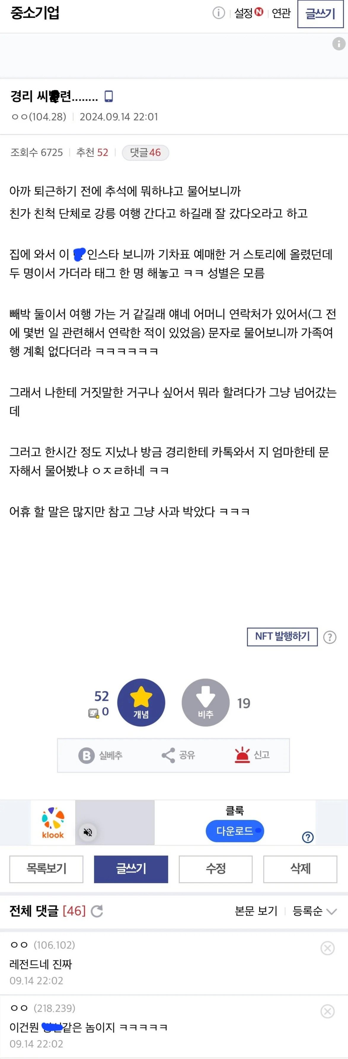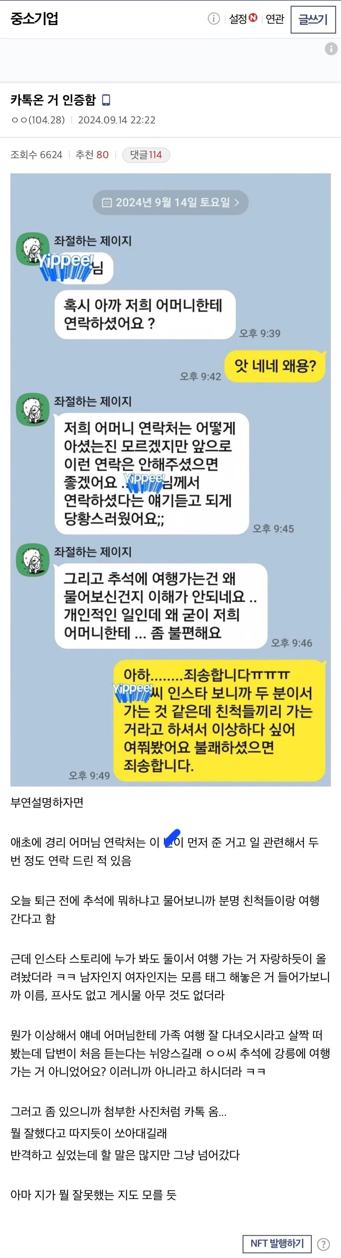 명절에 놀러와서 월패드 몰래 인증하다 걸린 시누이