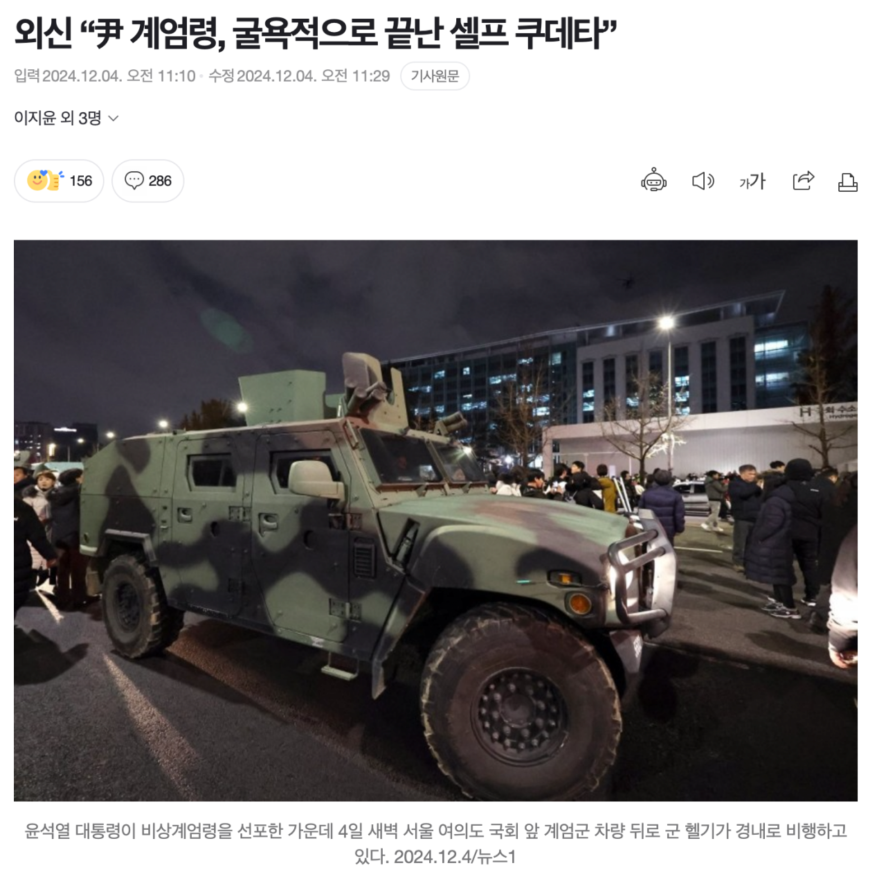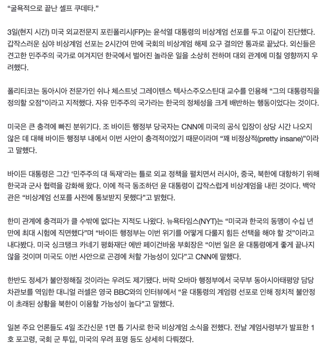 [외신] 윤 계엄령, 굴욕적으로 끝난 셀프 쿠데타