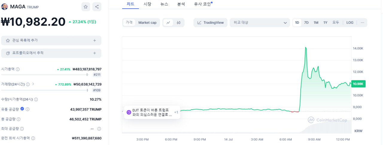 트럼프 코인 총격 이후 개떡상함