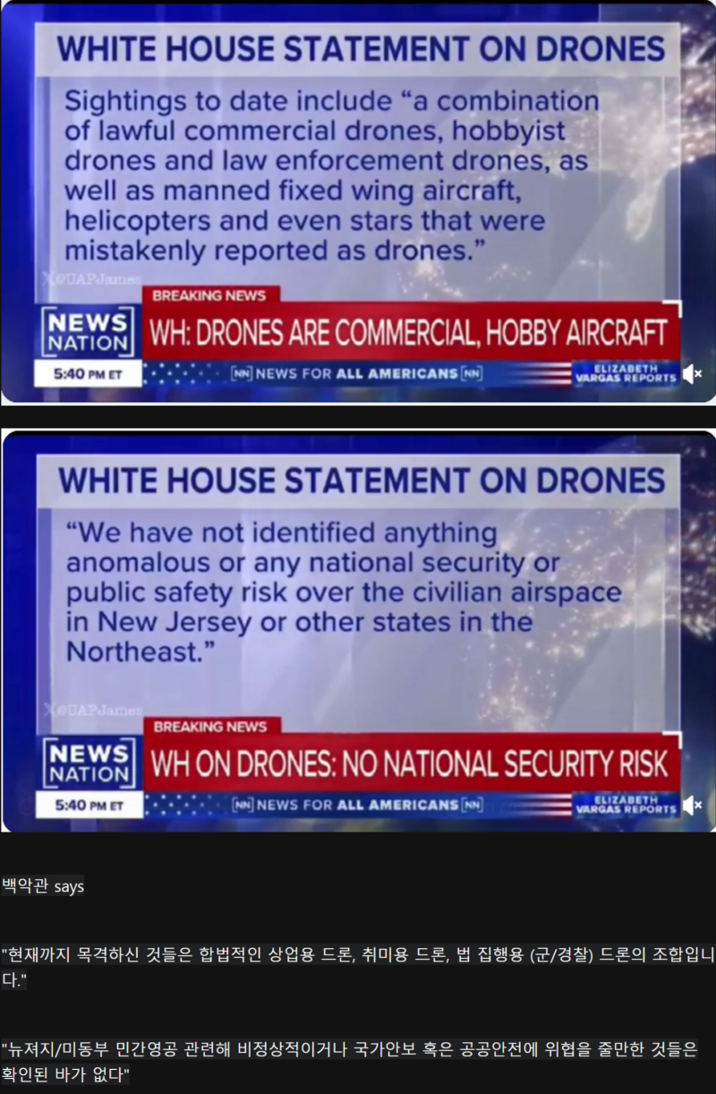 미국 드론사태 백악관 오피셜 입장 뜸