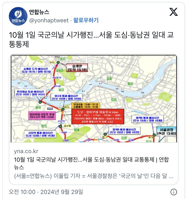 10월 1일 국군의날 시가행진...서울 도심·동남권 일대 교통통제
