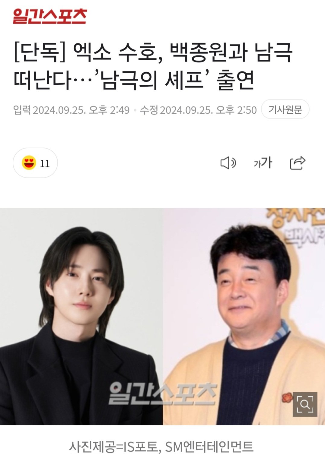 [단독] 엑소 수호, 백종원과 남극 떠난다…’남극의 셰프’ 출연
