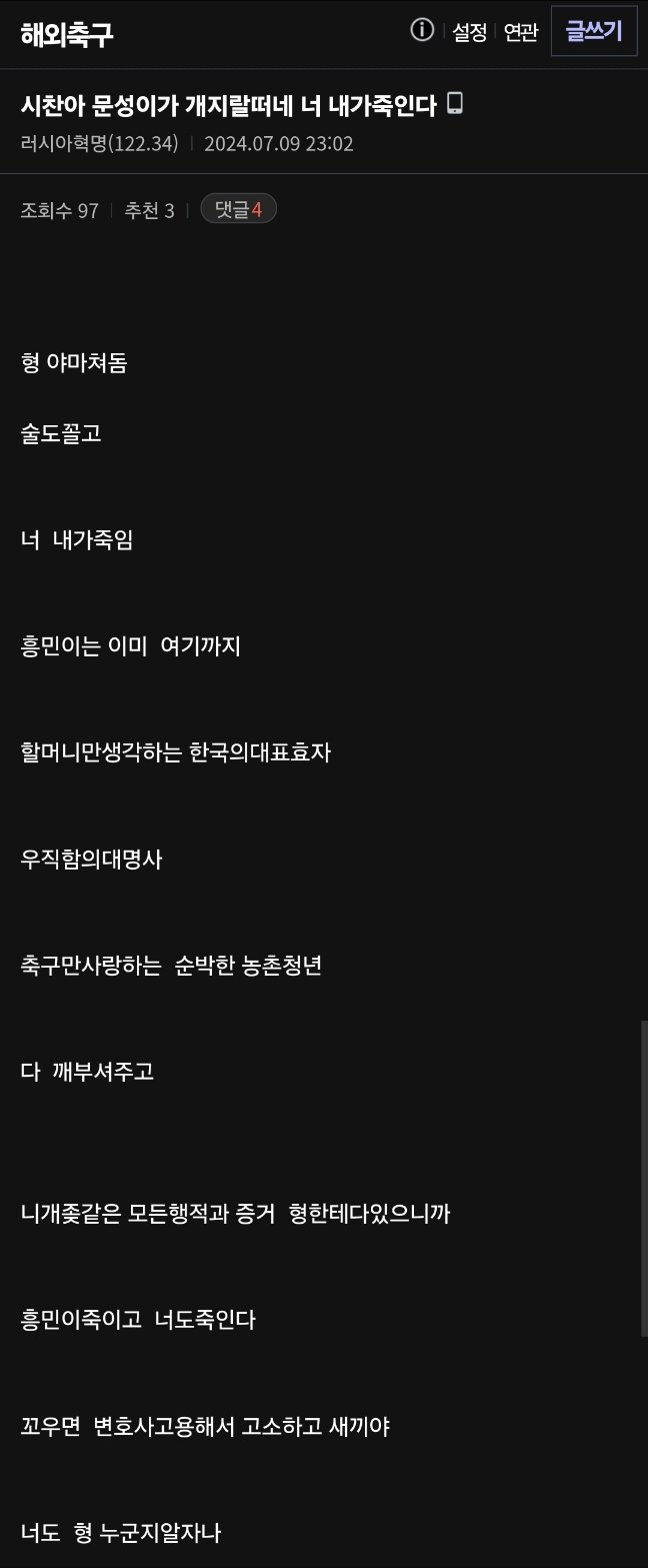 포텐 올라온 손흥민 황희찬 살해협박글 캡쳐본.jpg