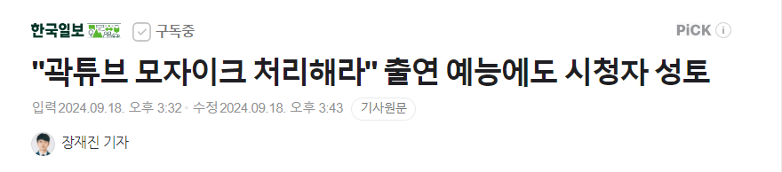 "곽튜브 모자이크 처리해라" 출연 예능에도 시청자 성토