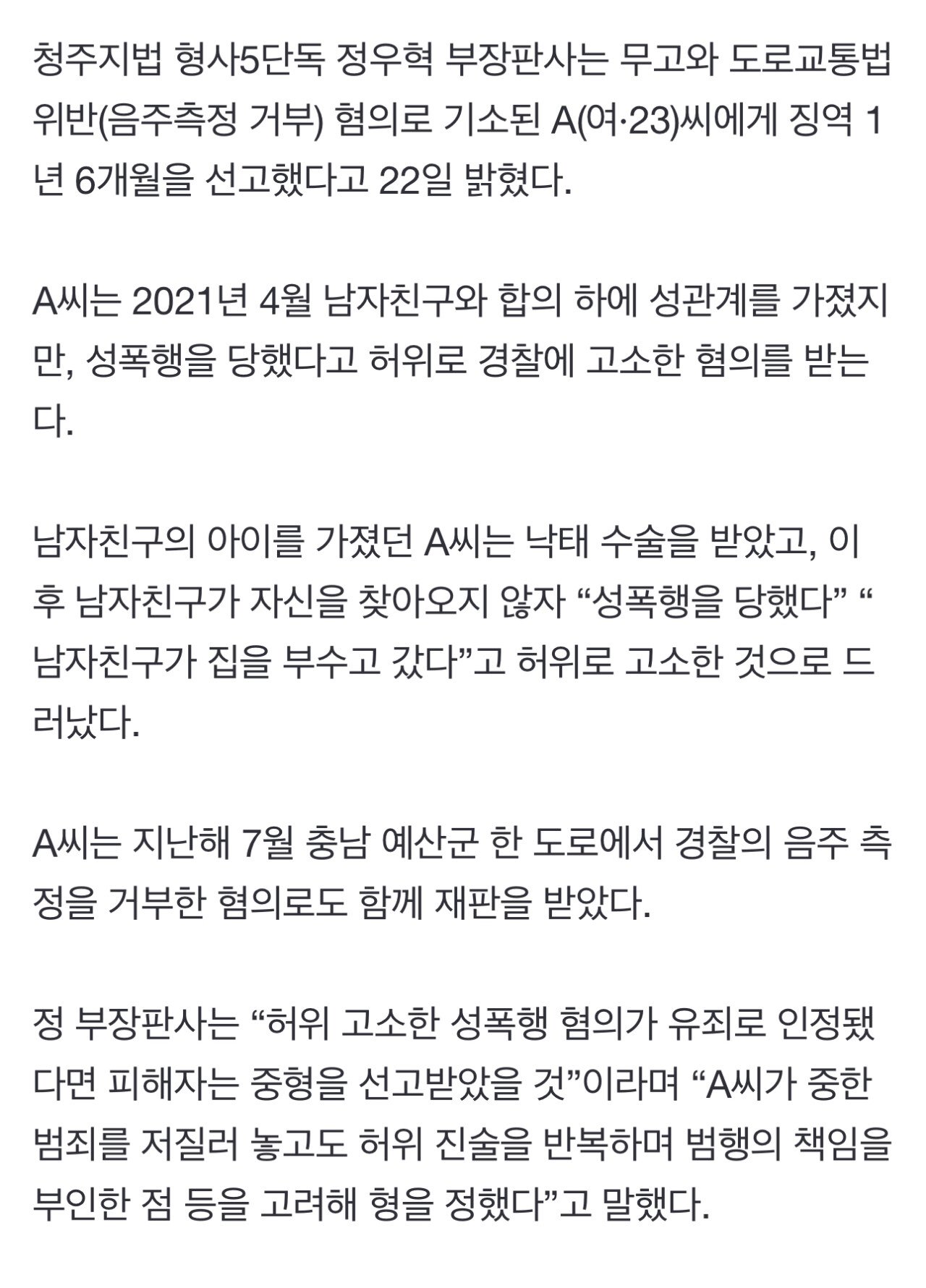 “성폭행 당했다” 허위로 남자친구 고소한 20대, 징역 1년 6개월