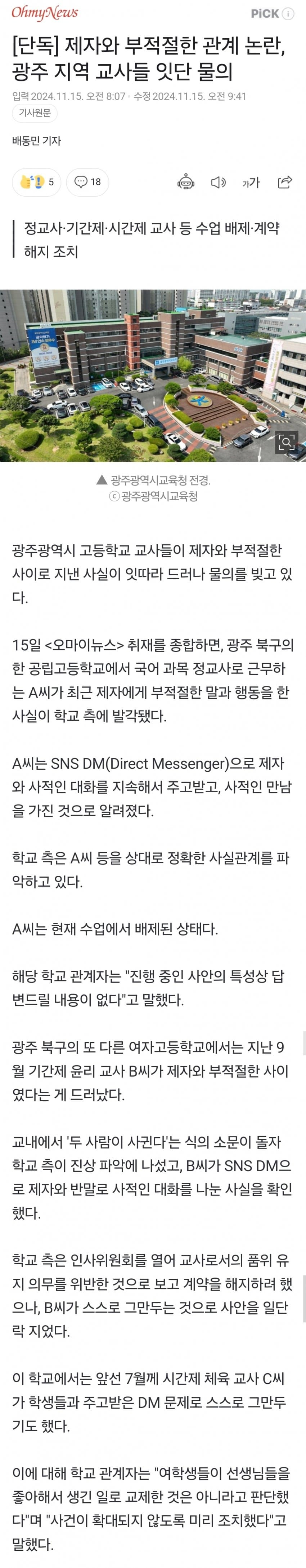 광주 고등학교 교사들, 제자와 은밀한 비밀친구 논란