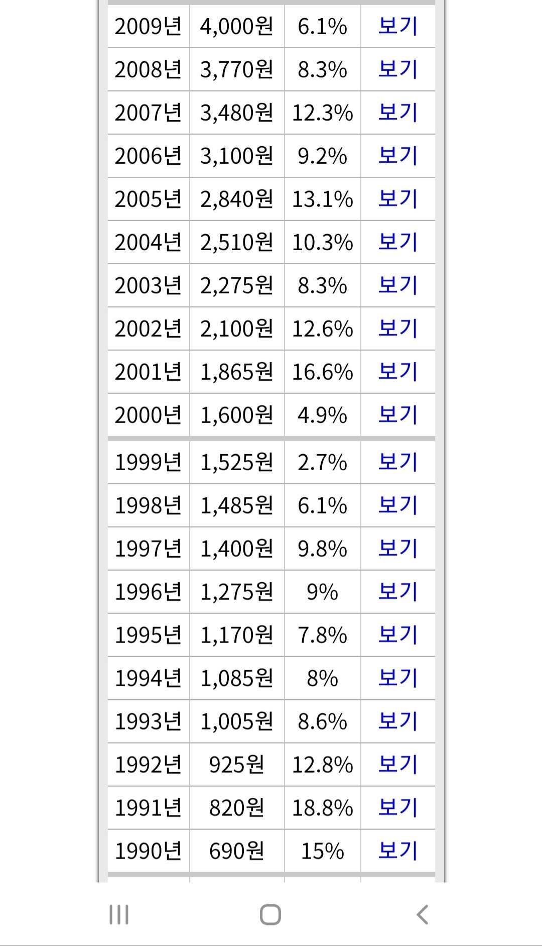 본인 2012년도 첫 알바시절 4580원 안주는곳이 허다했음... 보통 3500에서 4000원정도 사이였던걸로 기억