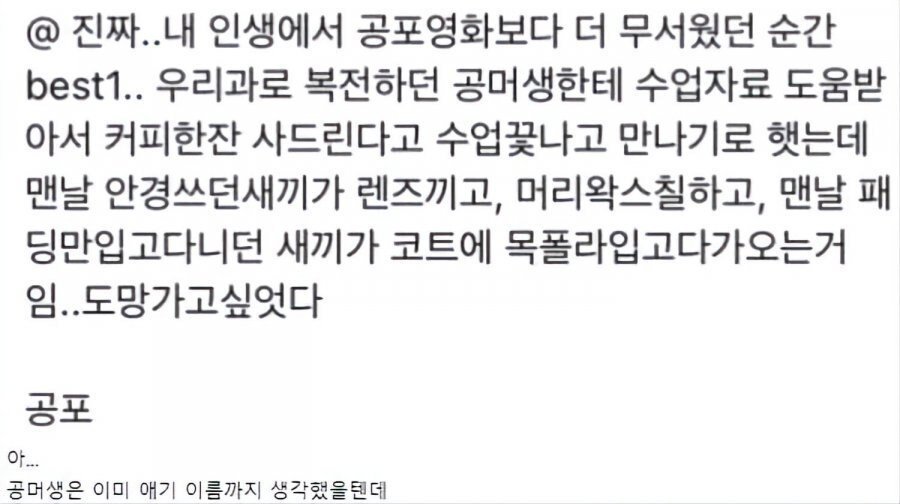 인생 최대의 공포를 느낀 여대생