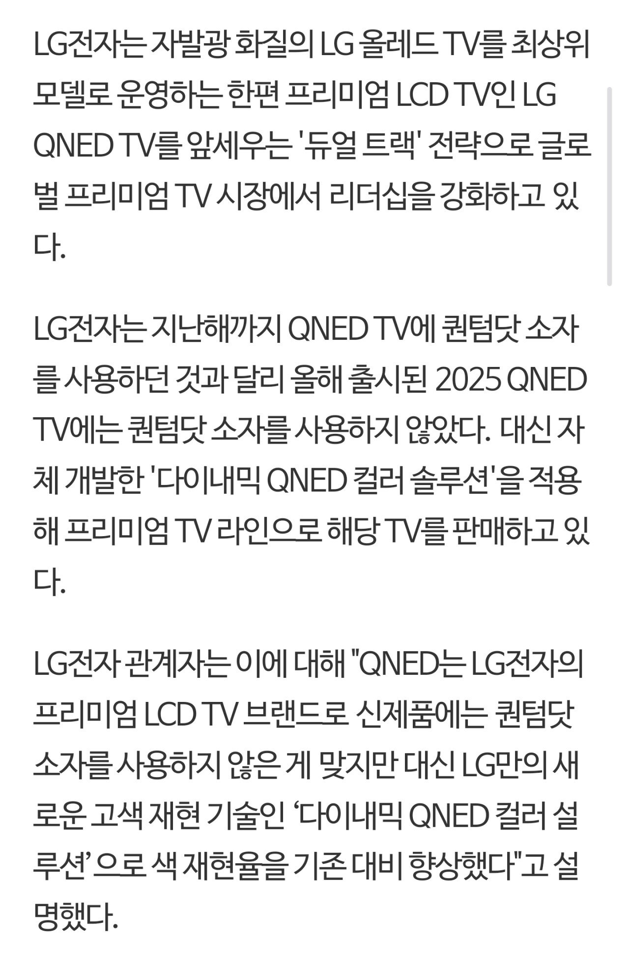 정작 까보니까 퀀텀닷소자는 커녕 'QNED 다이나믹 컬러 솔루션'이란 속임수로 퀀텀닷을 쓴것마냥 속이고 있었음.