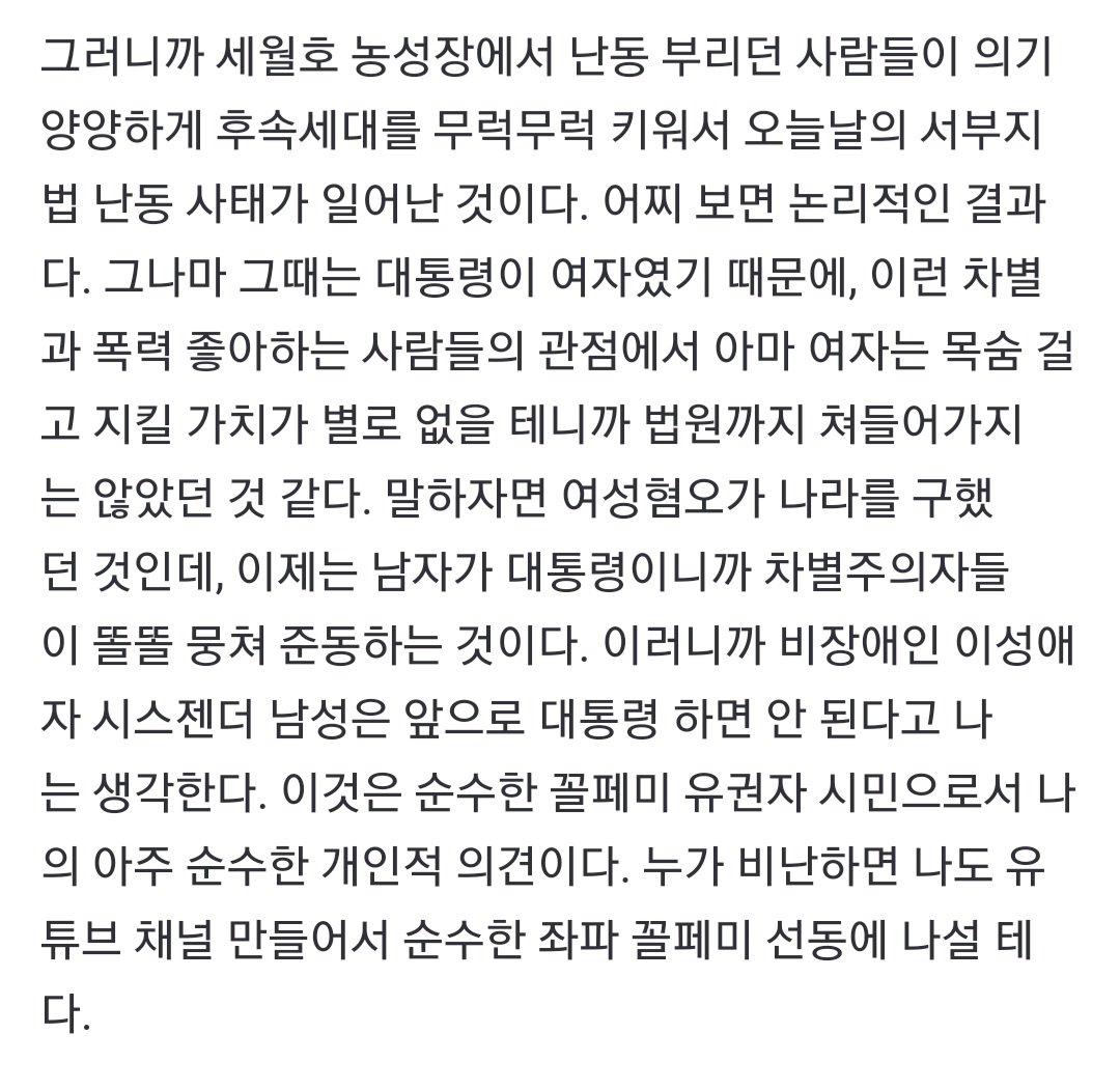 오늘자 여성신문 "앞으로 비장애인 이성애자 남성은 대통령 되면 안돼"