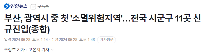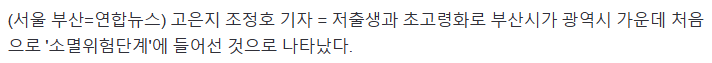 부산, 광역시 중 첫 '소멸위험지역'…전국 시군구 11곳 신규진입