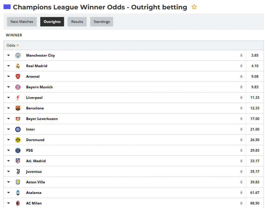 유럽대회 우승 배당률