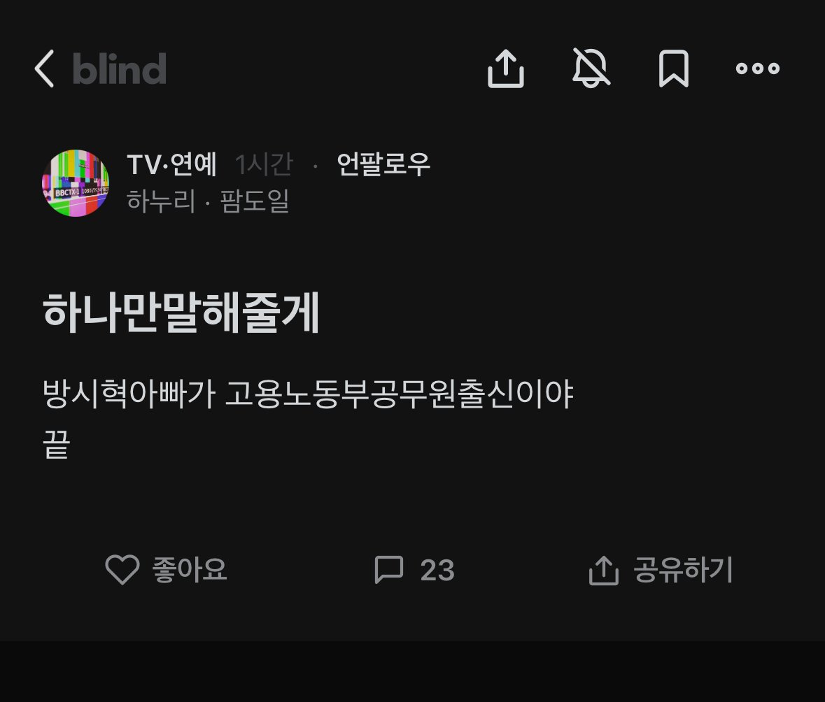 98년까지 고용노동부(당시 노동부) 국장하고 퇴직한지 27년이 다 돼가는 방시혁 아버지가 고용노동부를 조종해서 하이브에 대한 근로기준법 위반 혐의를 모두 혐의없음 처리하고, 민사법원까지 장악을 해서 일이 이렇게 됐다고 하네요.
