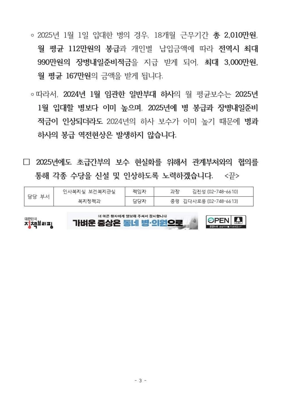 국방부 : 하사 봉급 이미 충분함