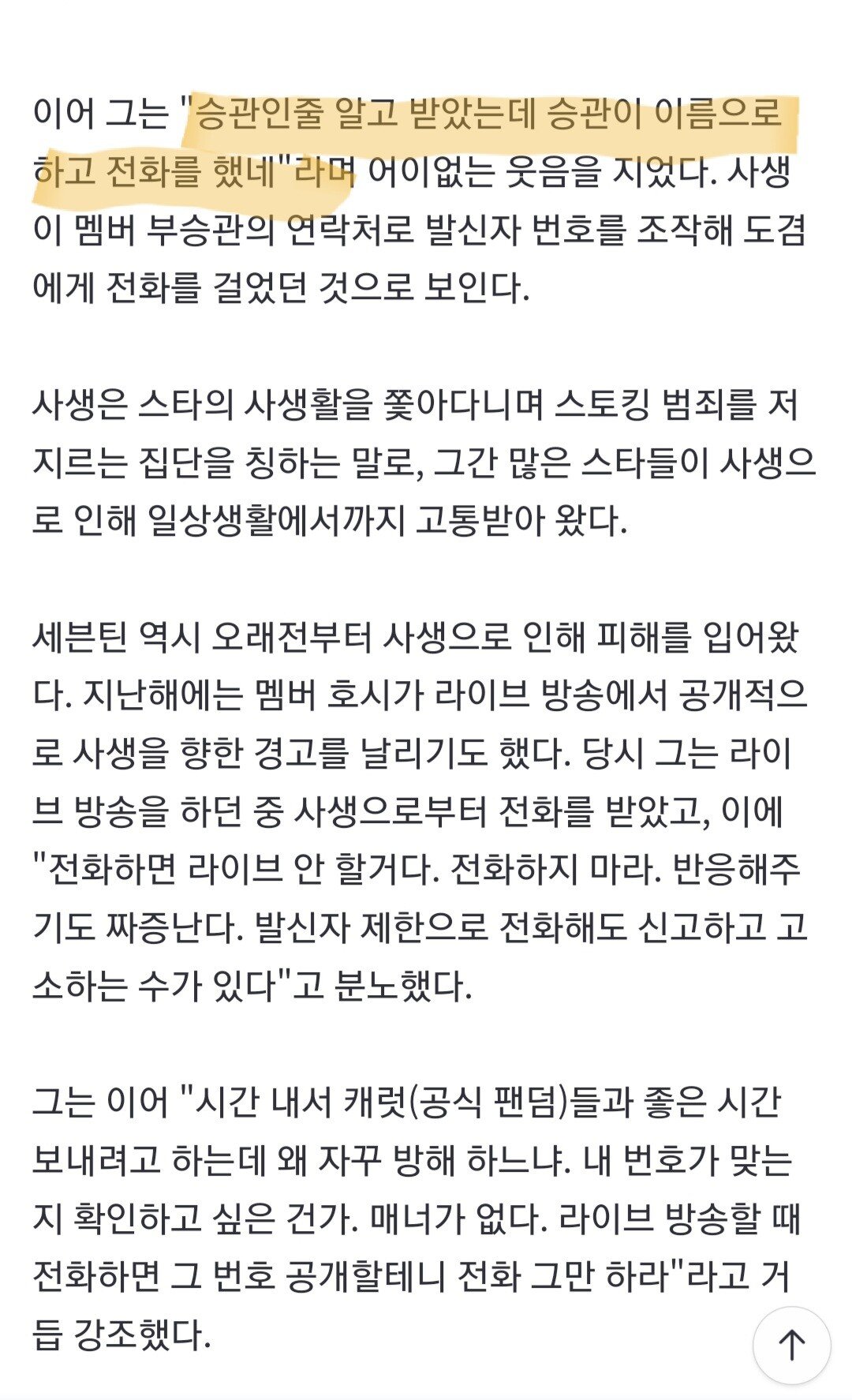 세븐틴 사생 피해 심각, 발신자 번호 조작까지.."멤버 이름으로 전화" 충격