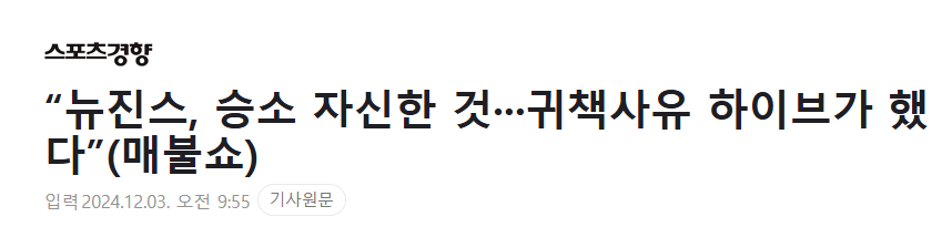 “뉴진스, 승소 자신한 것···귀책사유 하이브가 했다”