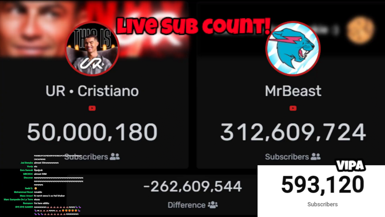 미스터비스트까지 2억 6천만명 남음