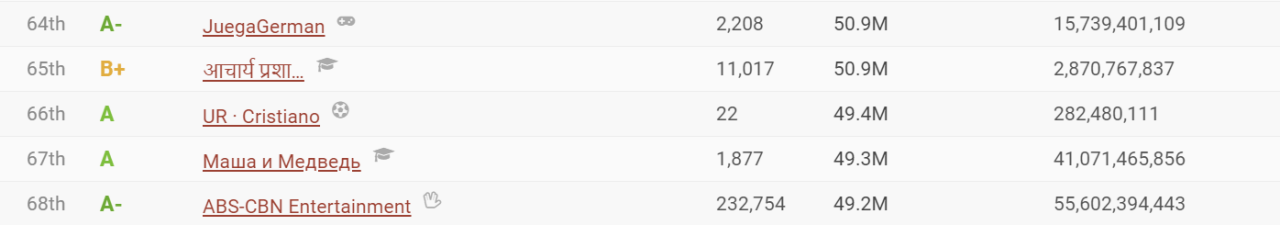 전 세계 유튜브 구독자 순위 66위