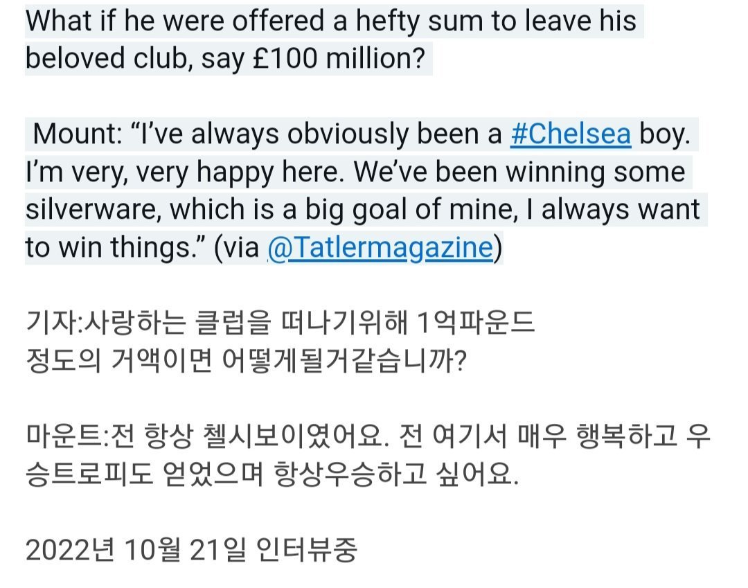 마운트: 전 언제나 첼시보이였어요 ㅋㅋㅋ-!