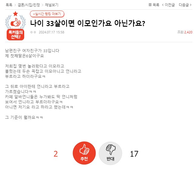 나이 33세 여자한테 이모라고 부르면 안되나요??..pann