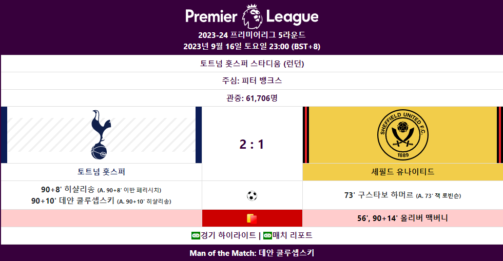 토트넘은 작년 셰필드와 1차전 경기에서 텐백을 못뚫어 98분까지 0대1로 쳐발리다가 98분 100분 히샬리송 캐리로 겨우 이김