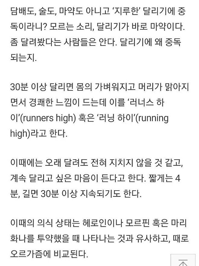 30분 연속으로 달리면 기분이상해지고 붕 뜬다고 함