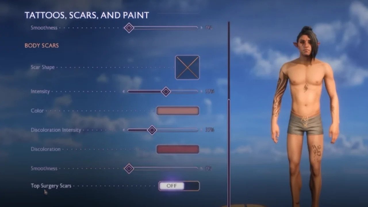 체형 설정은 한계가 있는데 성전환 수술자국은 있다는 게 코메디