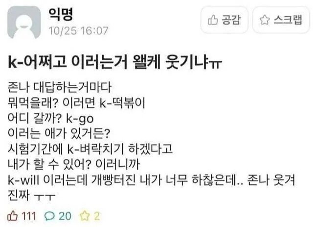 자꾸 말할 때 마다 K 어쩌고 붙이는 친구