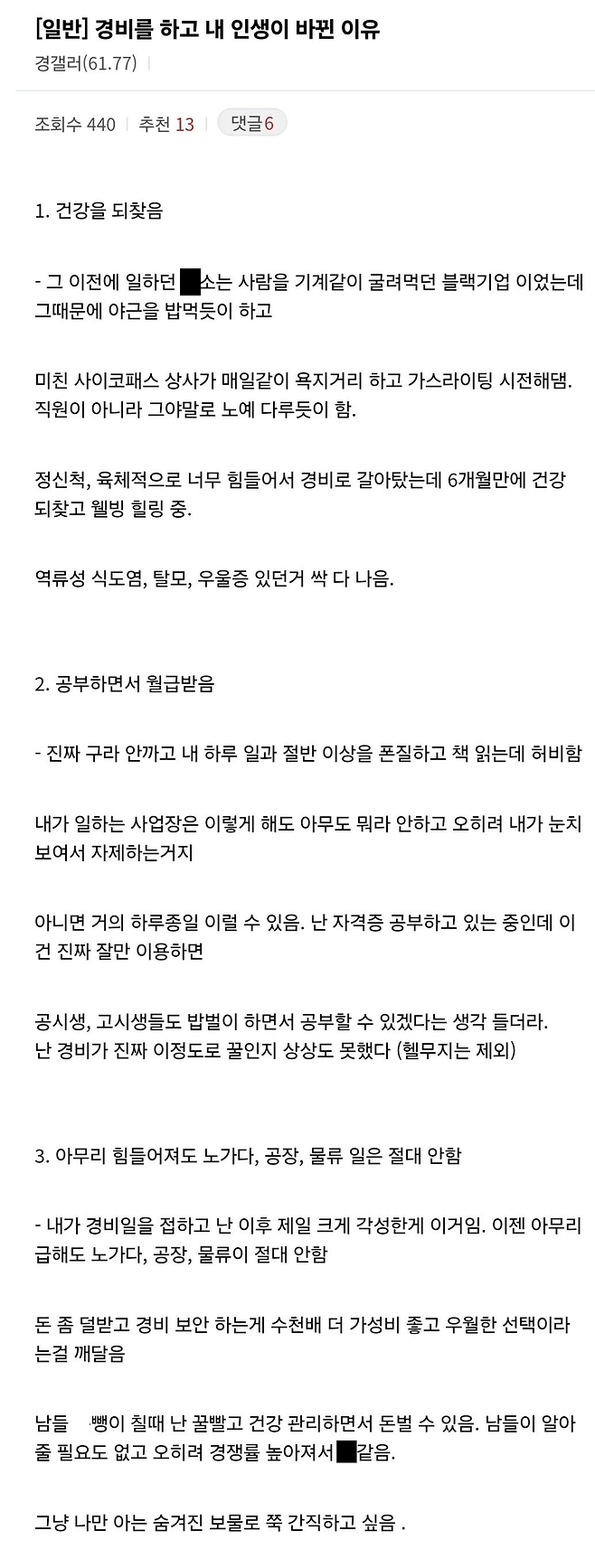 경비원을 하고 어떤 사람의 인생이 바뀐 이유