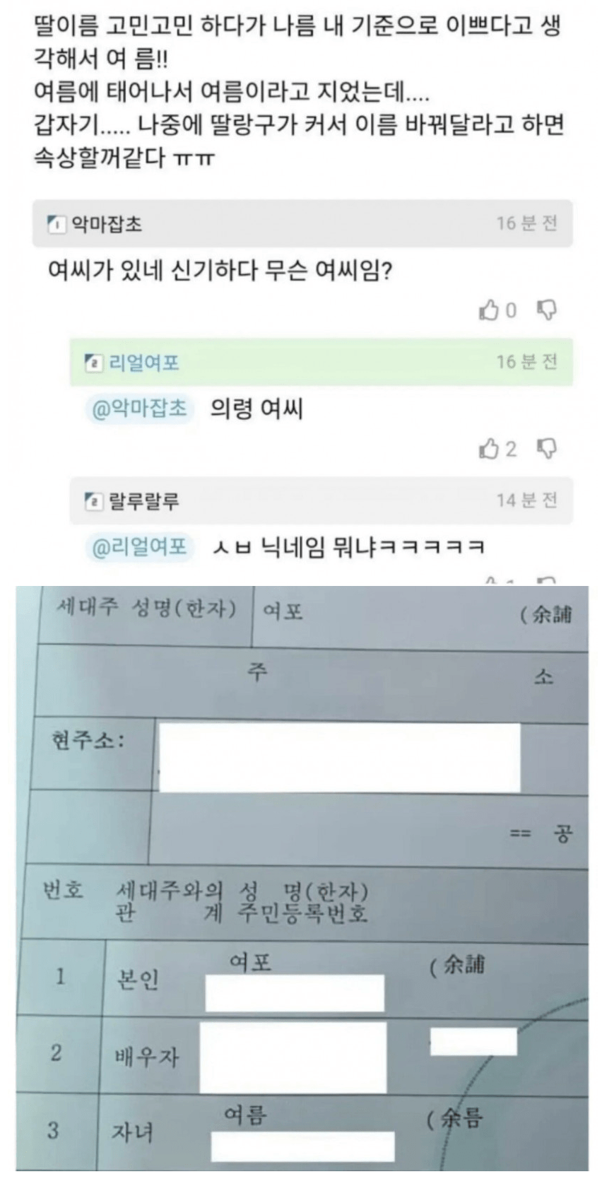여름에 태어나서 딸이름을 여름으로 정한 아빠