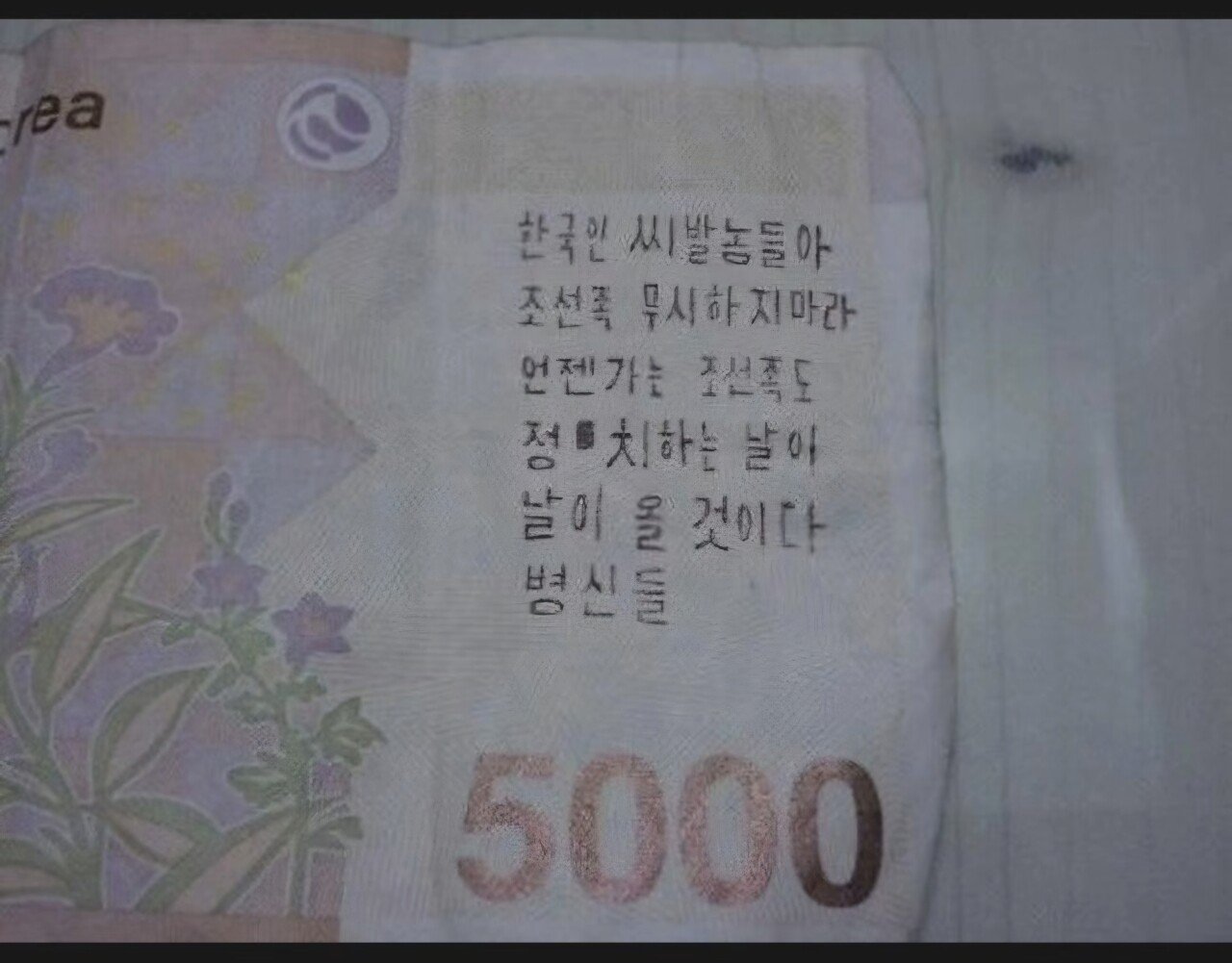 조선족이 지폐에 쓴 소름끼치는 낙서