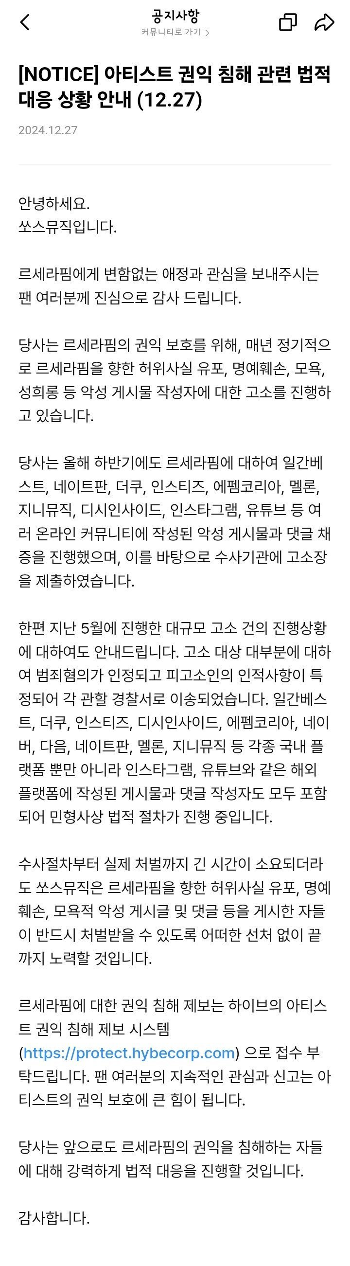 르세라핌 대상 각 커뮤니티 악플 허위사실유포 성희롱 등 대량 고소 진행중