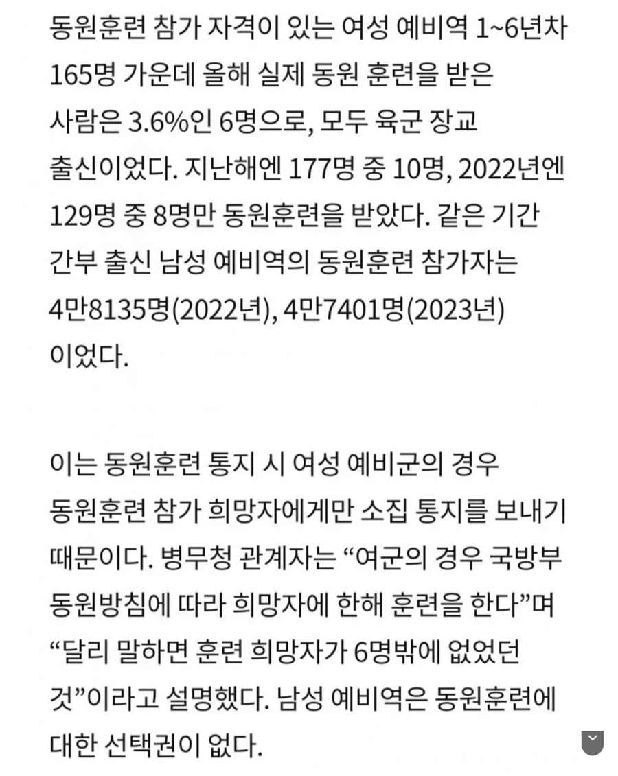 여군은 희망자만 훈련 함