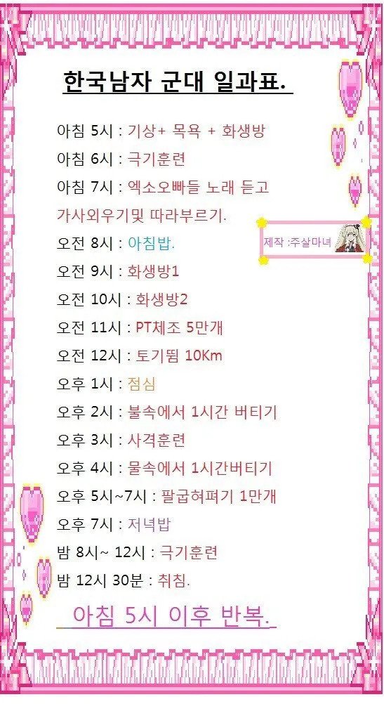 고전) 볼때마다 개빡치는 한국남자 군대일과표.sibal