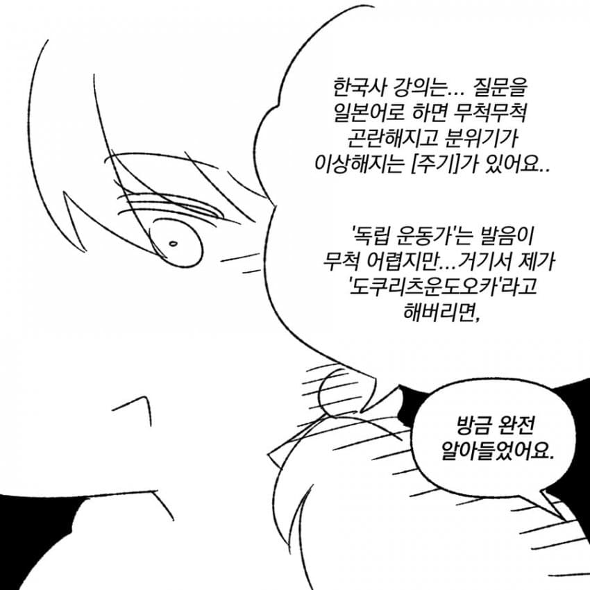 "한국사 강의 때 일본어 안 나오게 평소에도 안 쓰려고 노력하고 있어요"