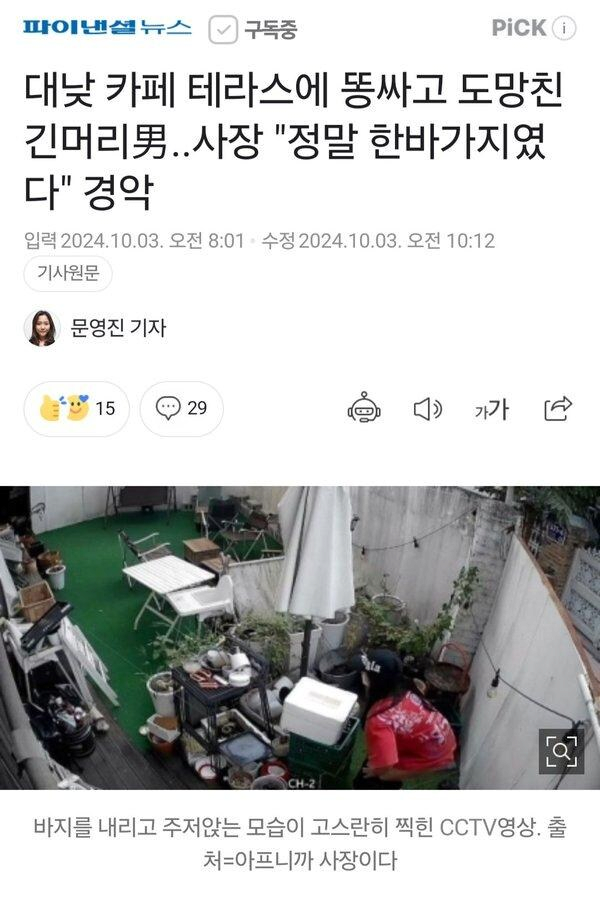 사장 : 테라스에 x싸고 간놈 찾습니다