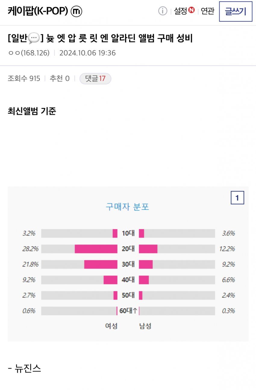 뉴진스, 르세라핌, 아일릿 팬덤 성비 + 연령대