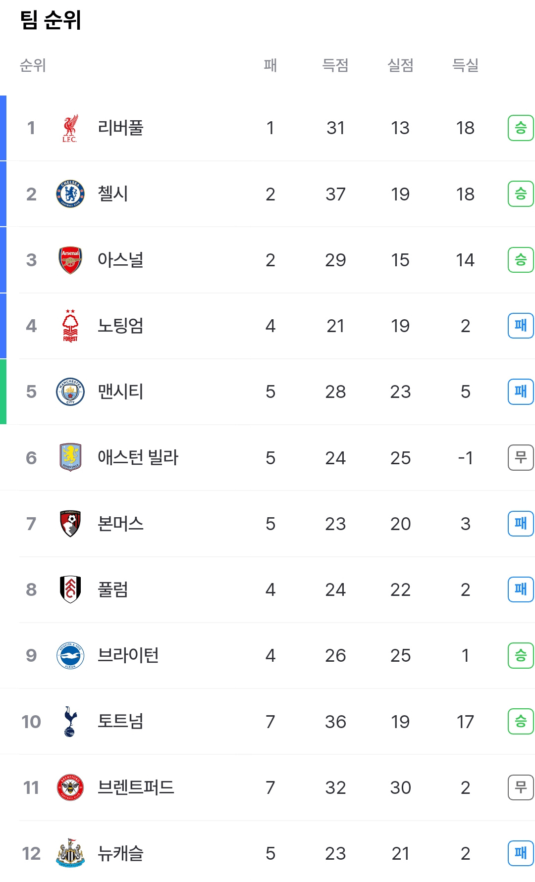 득실이 1위랑 1개차이임 ㅋㅋㅋ