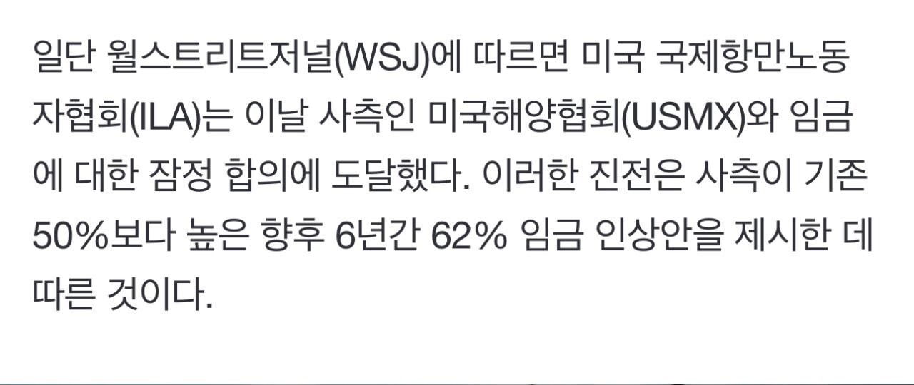 美 항만파업 종료…임금 62% 인상안에 합의