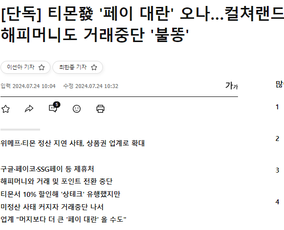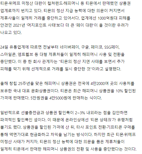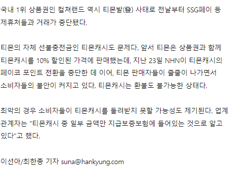 티몬 사태가 진짜 위험하다는 적신호가 계속 들어오고 있음