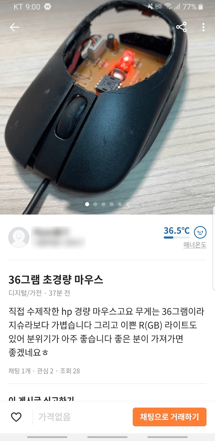 직접 수제작한 초경량 마우스