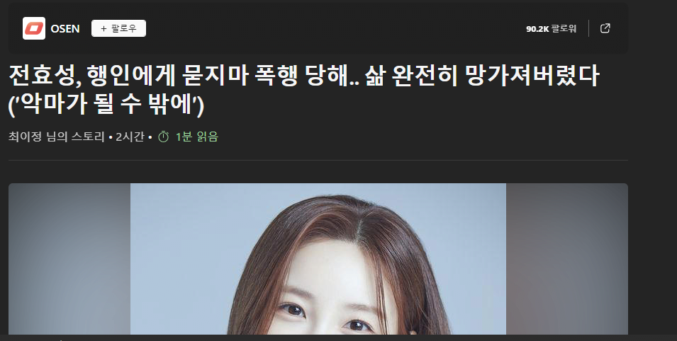 [Osen] 전효성, 행인에게 묻지마 폭행 당해..