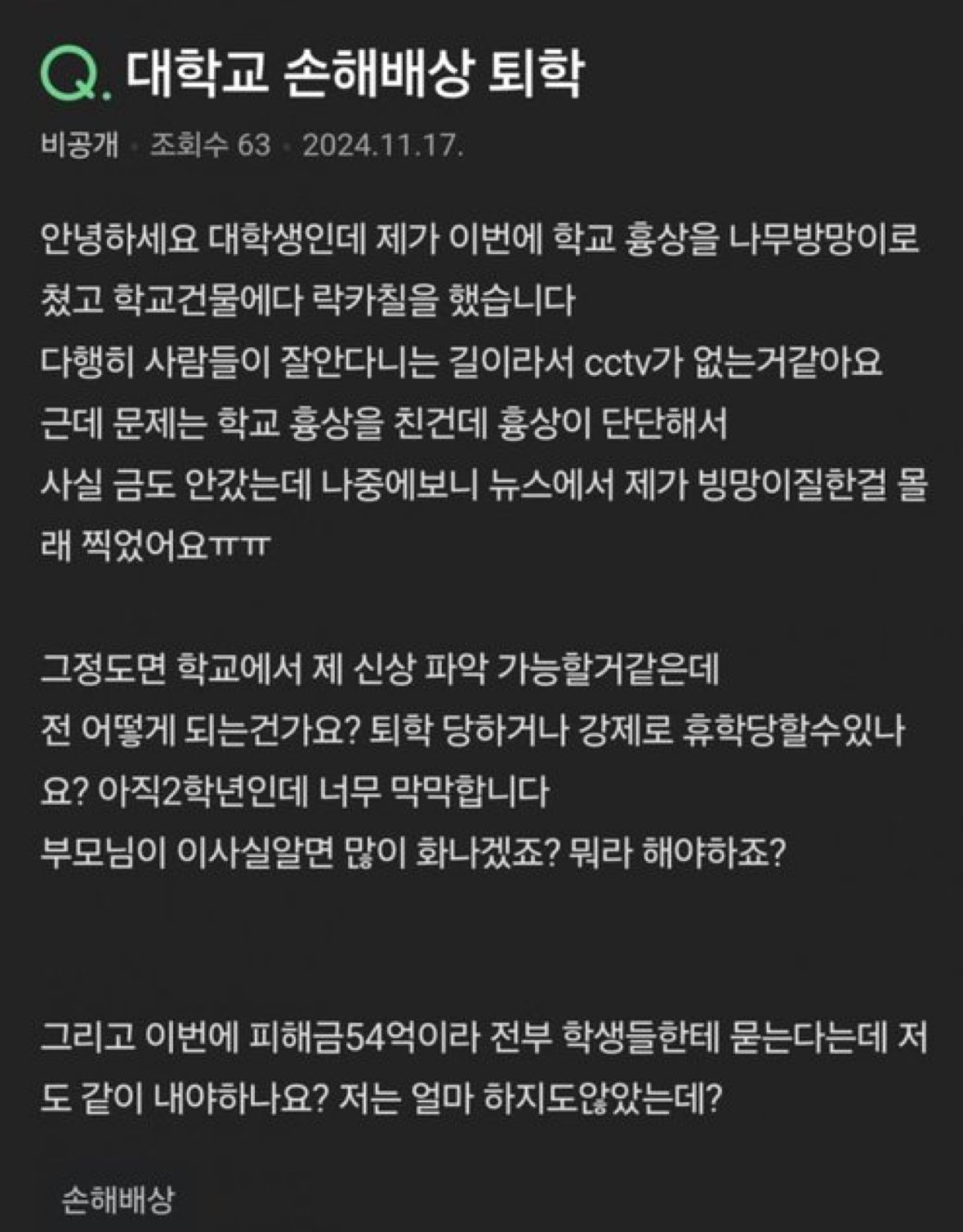 퇴학 당하나용? 너무 무서워연 ㅠㅠ