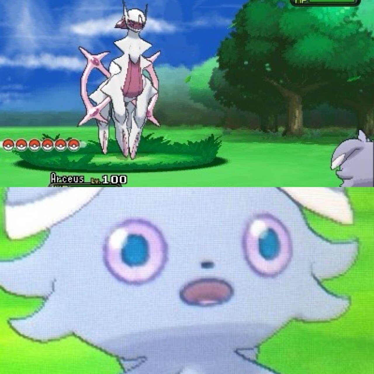 레벨100 아르세우스를 상대로 만날때 찐반응.jpg